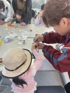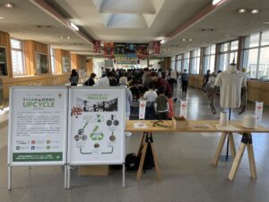 10月12日(土)JR山形駅の東西自由通路でさくらんぼの剪定枝のアップサイクルの展示と、さくらんぼの剪定枝が原料の紙と糸を使ったワークショップを行いました。